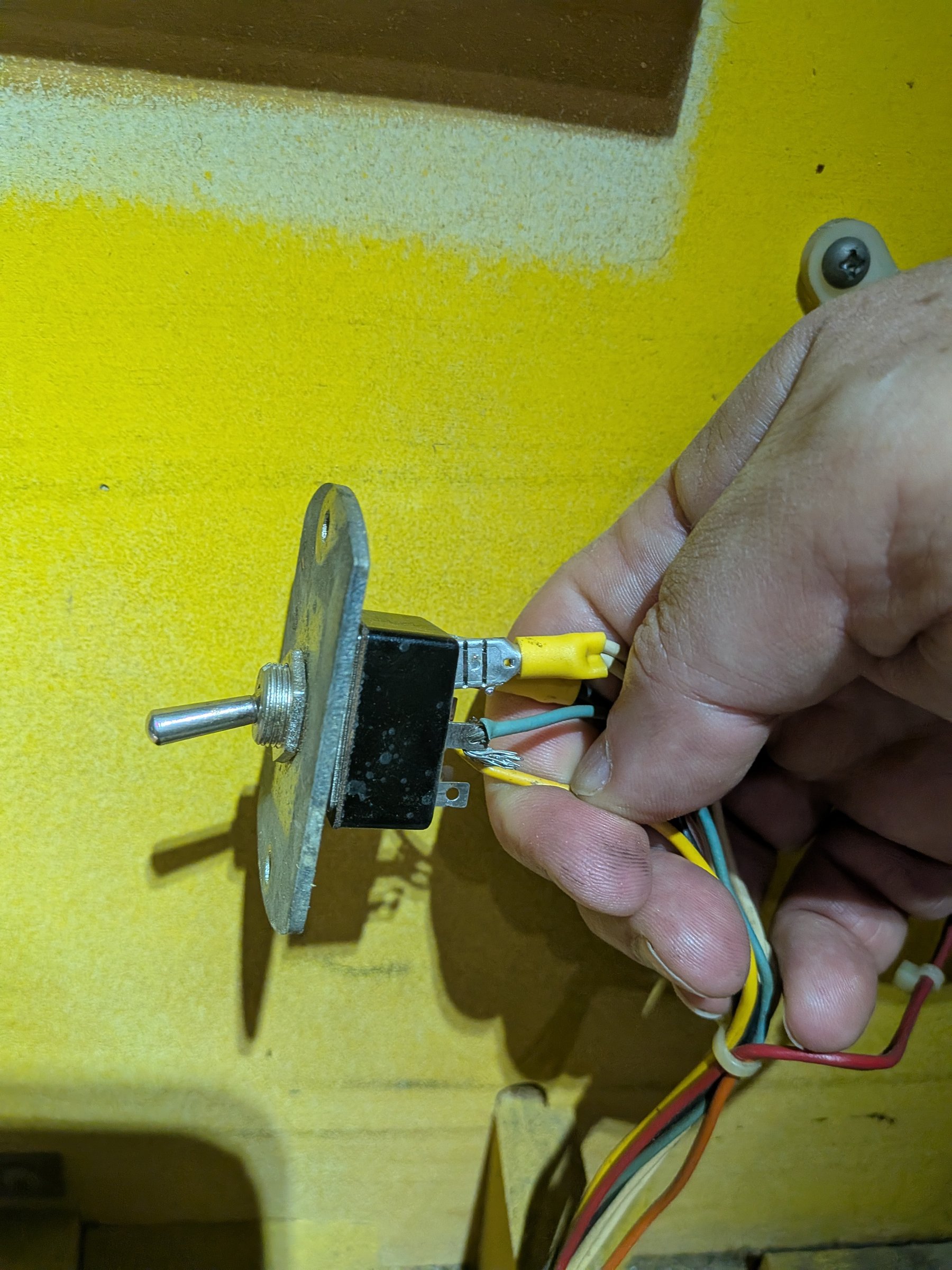 Power switch is DPST. Marked 5A 125V, 3A 250V. 0.45" diameter, about 0.5"length of thread. Mounted on plate about 0.09".