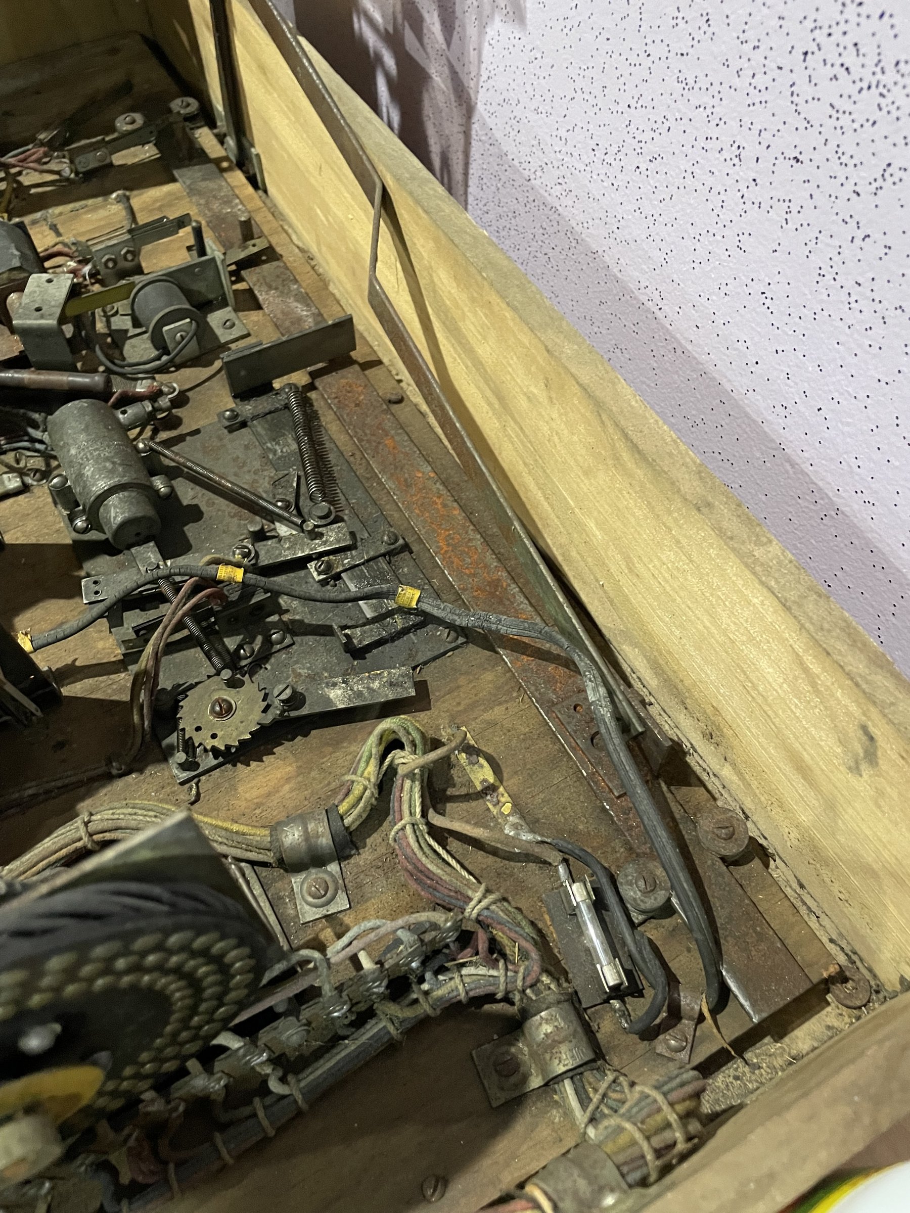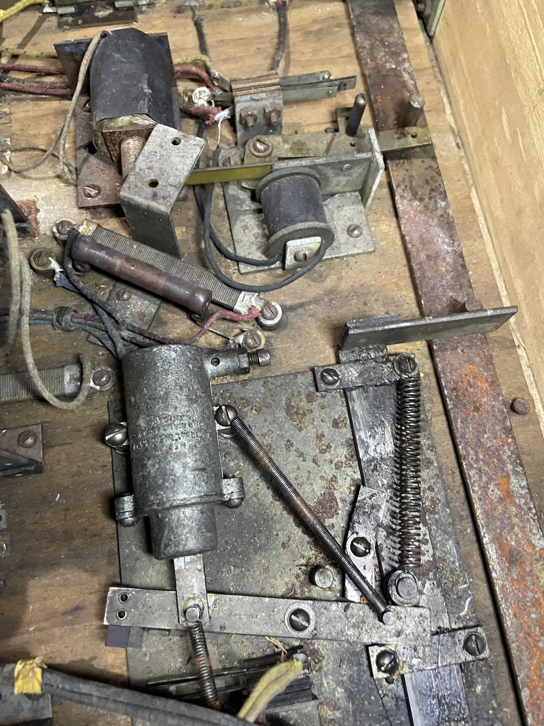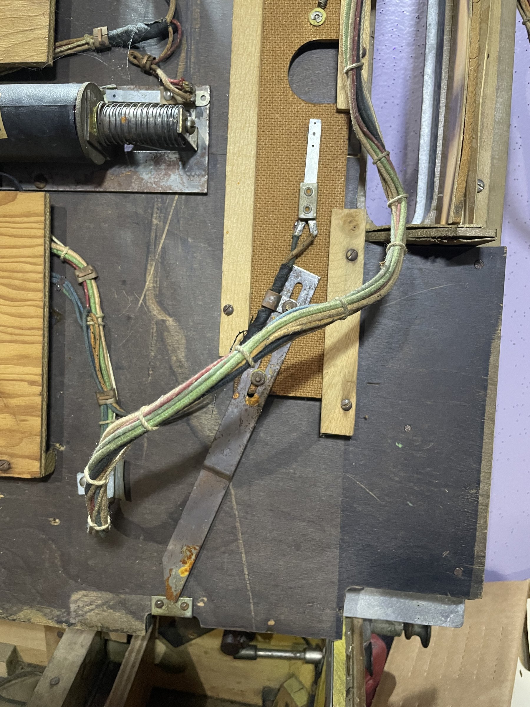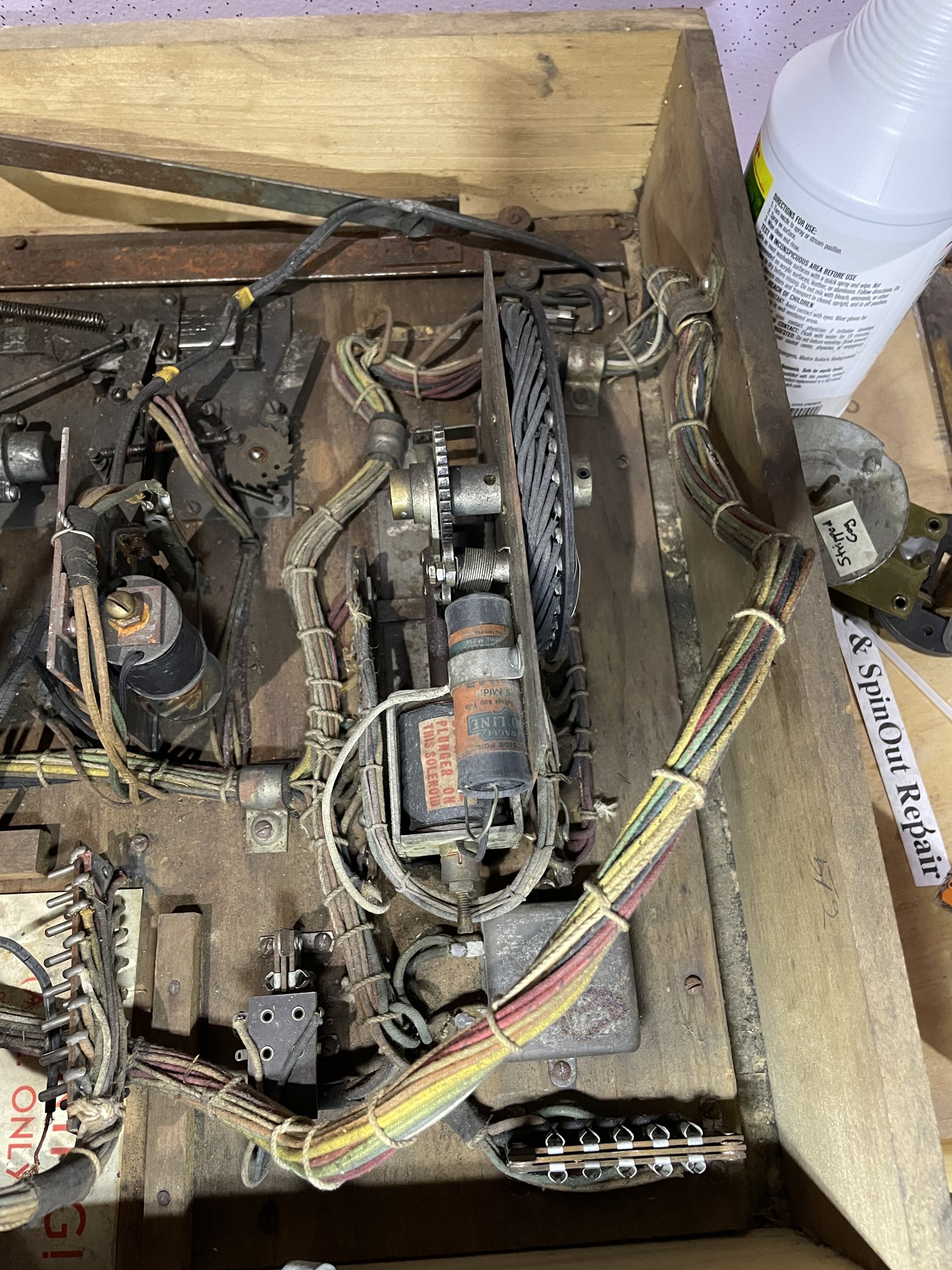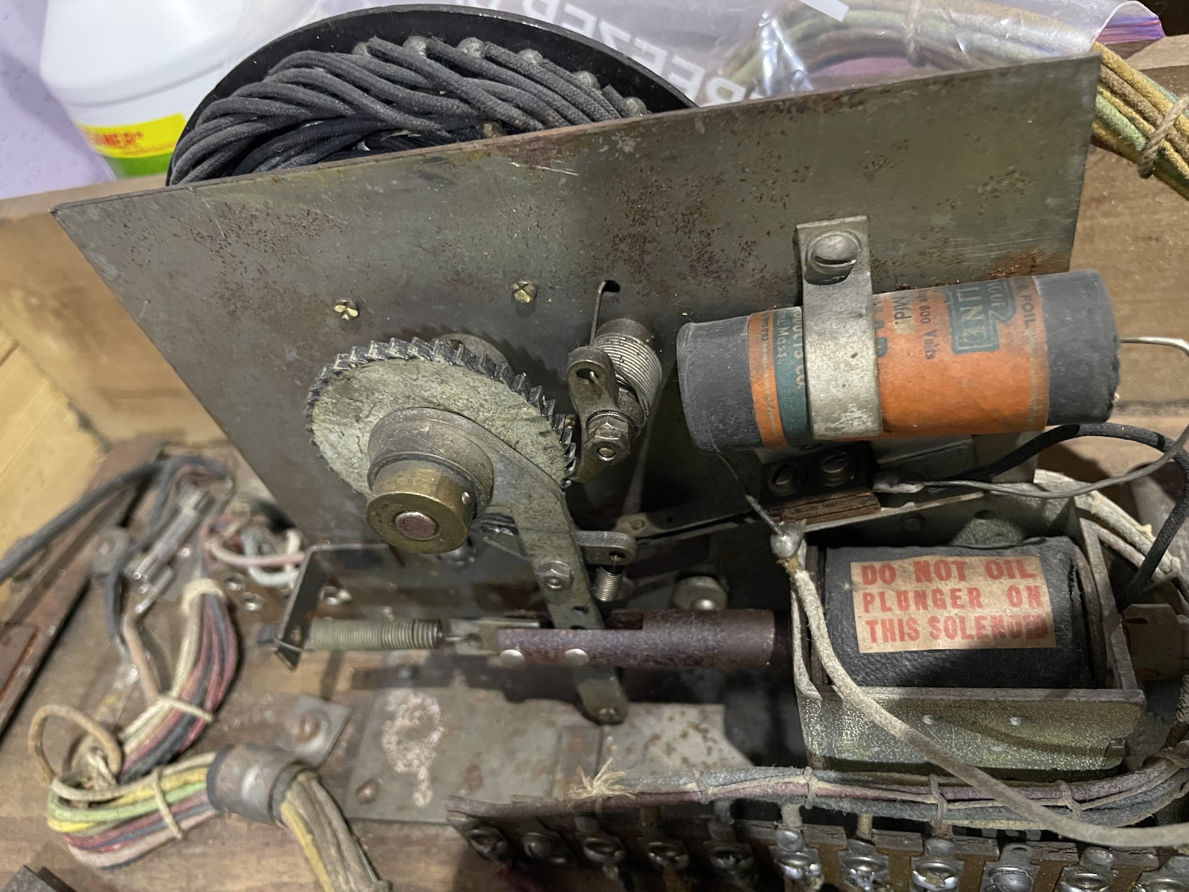 Many solenoids have rusty shafts. Some springs are broken. Many rusty parts. Wiring looks good. Score assembly has no visible damage.