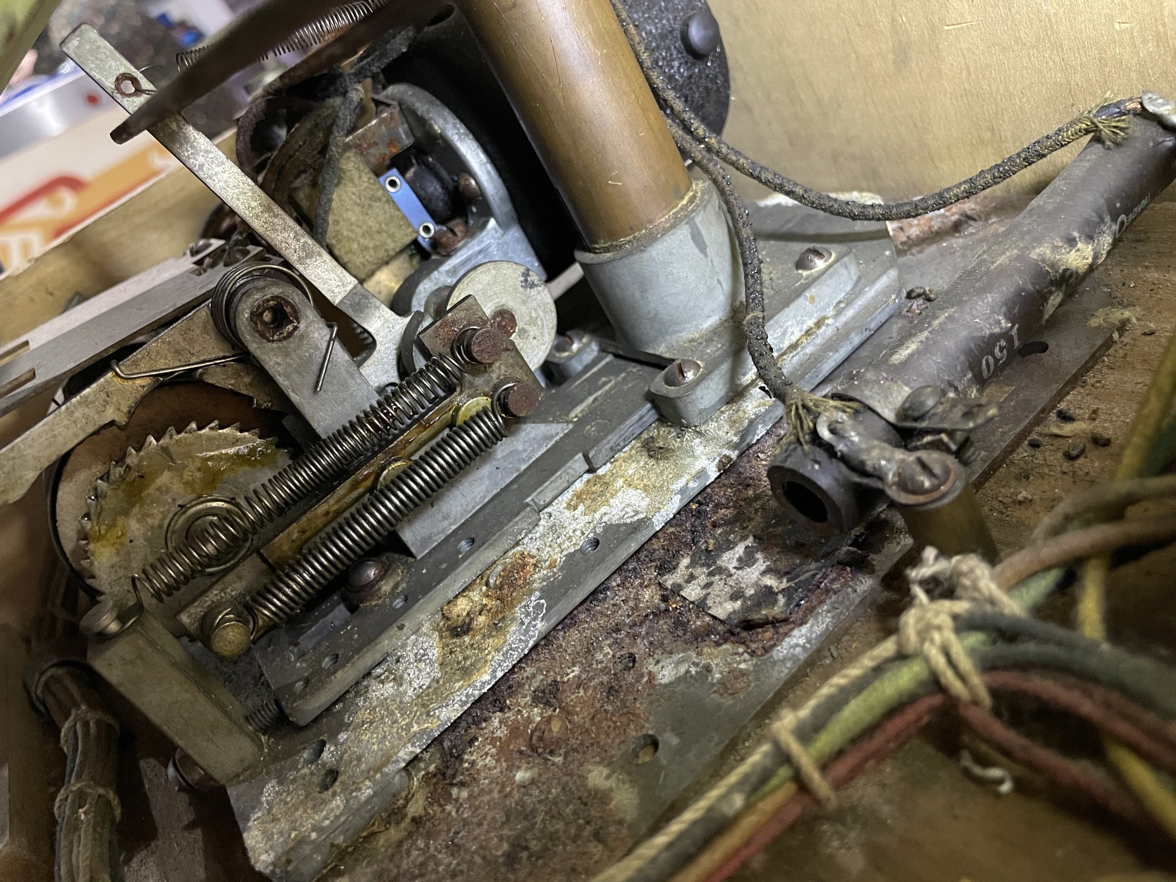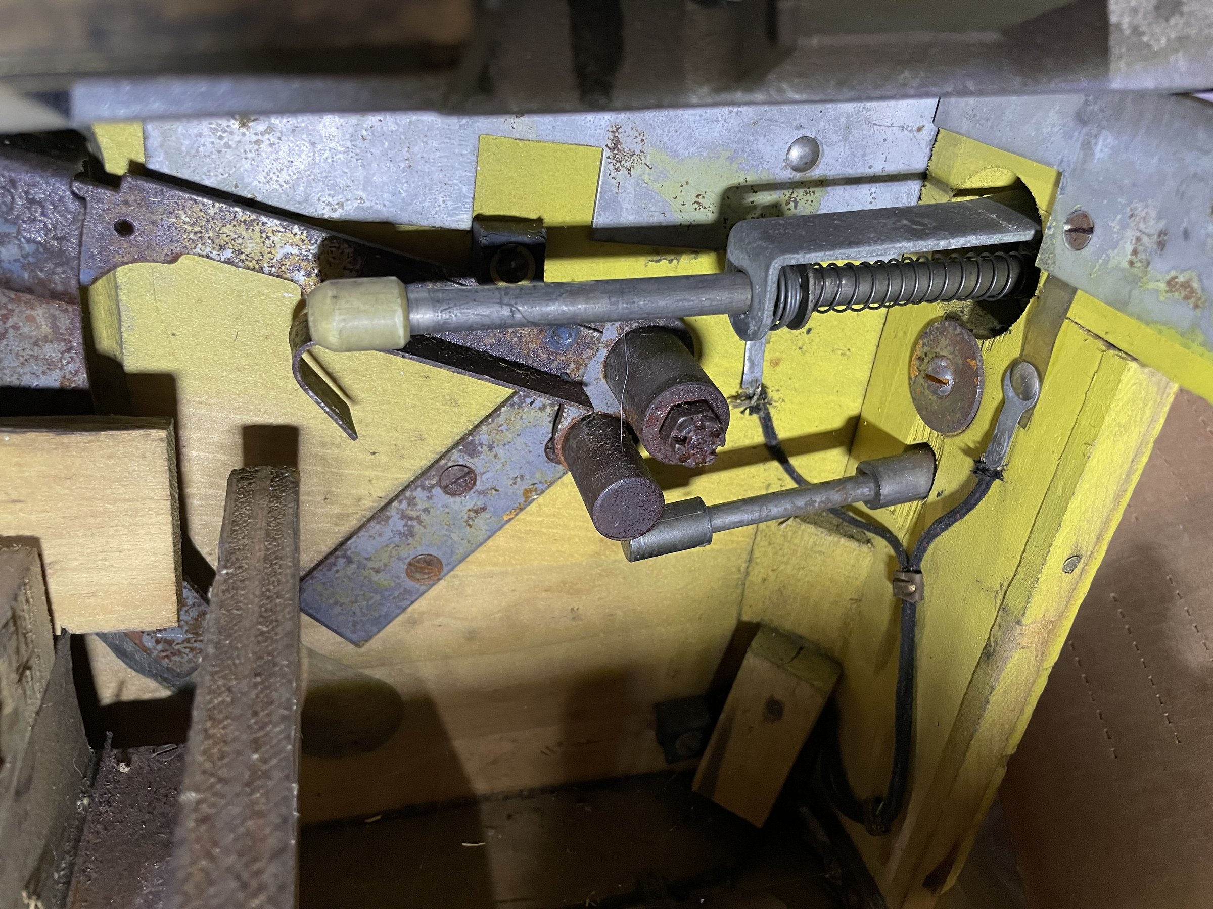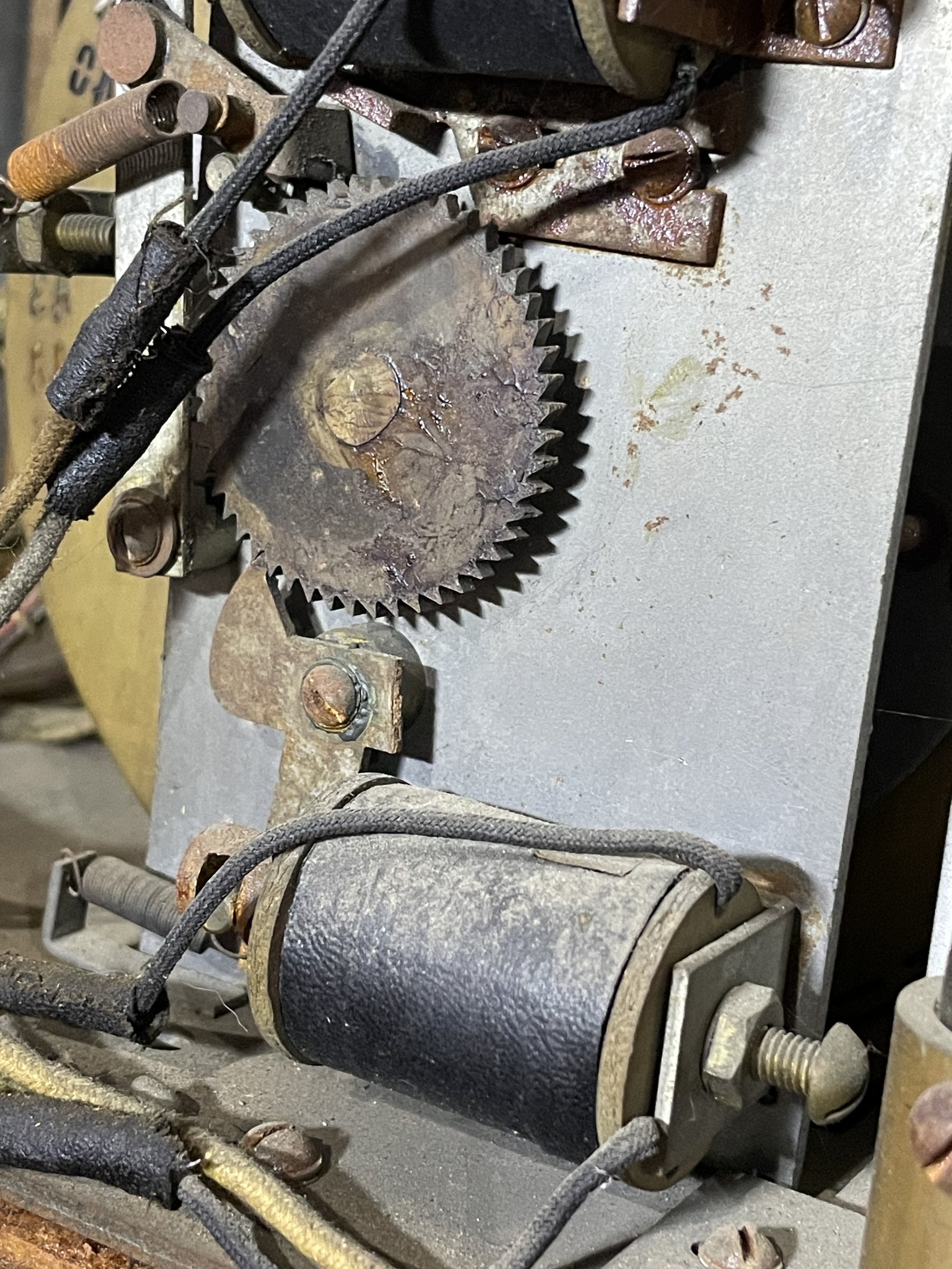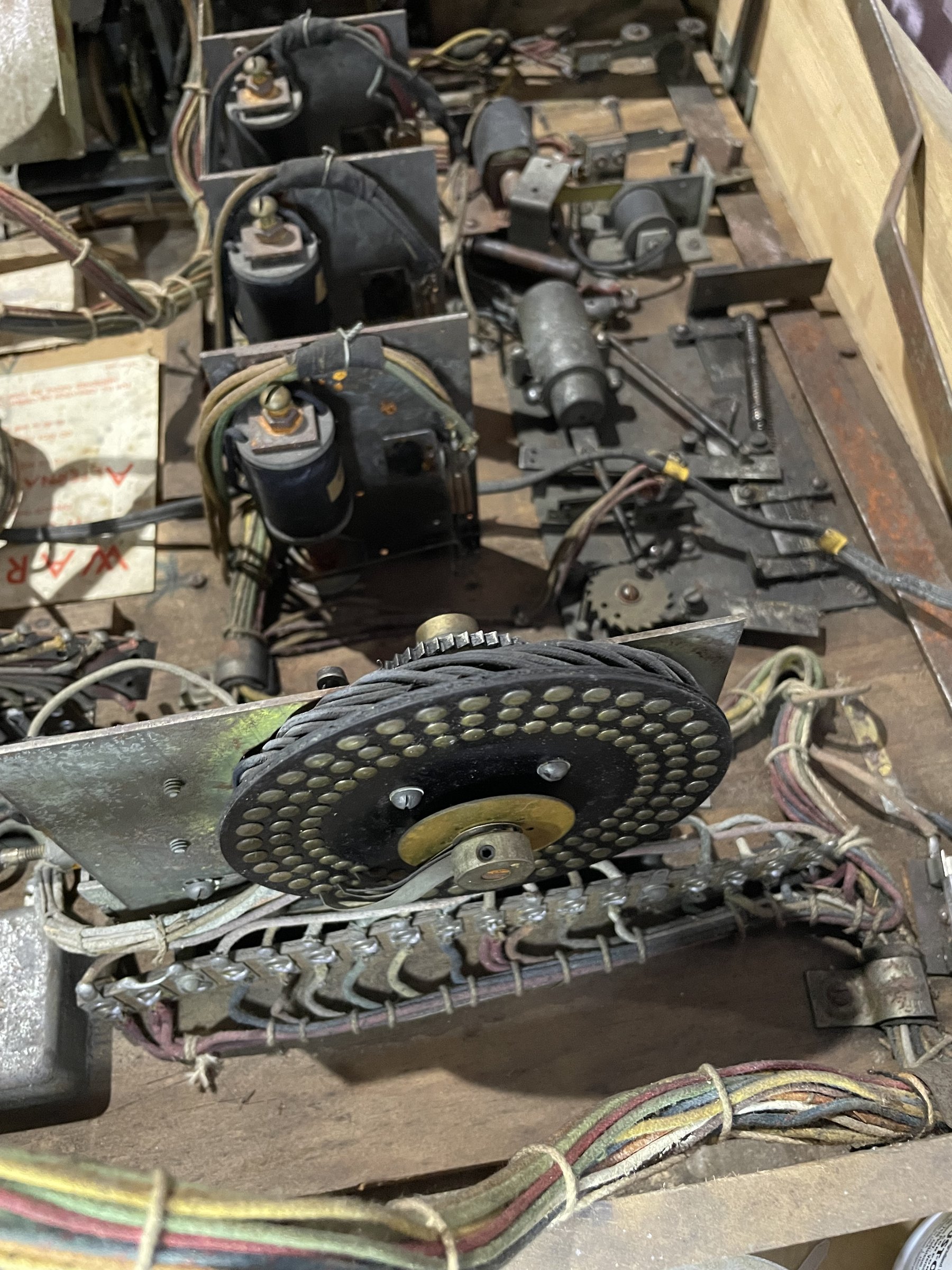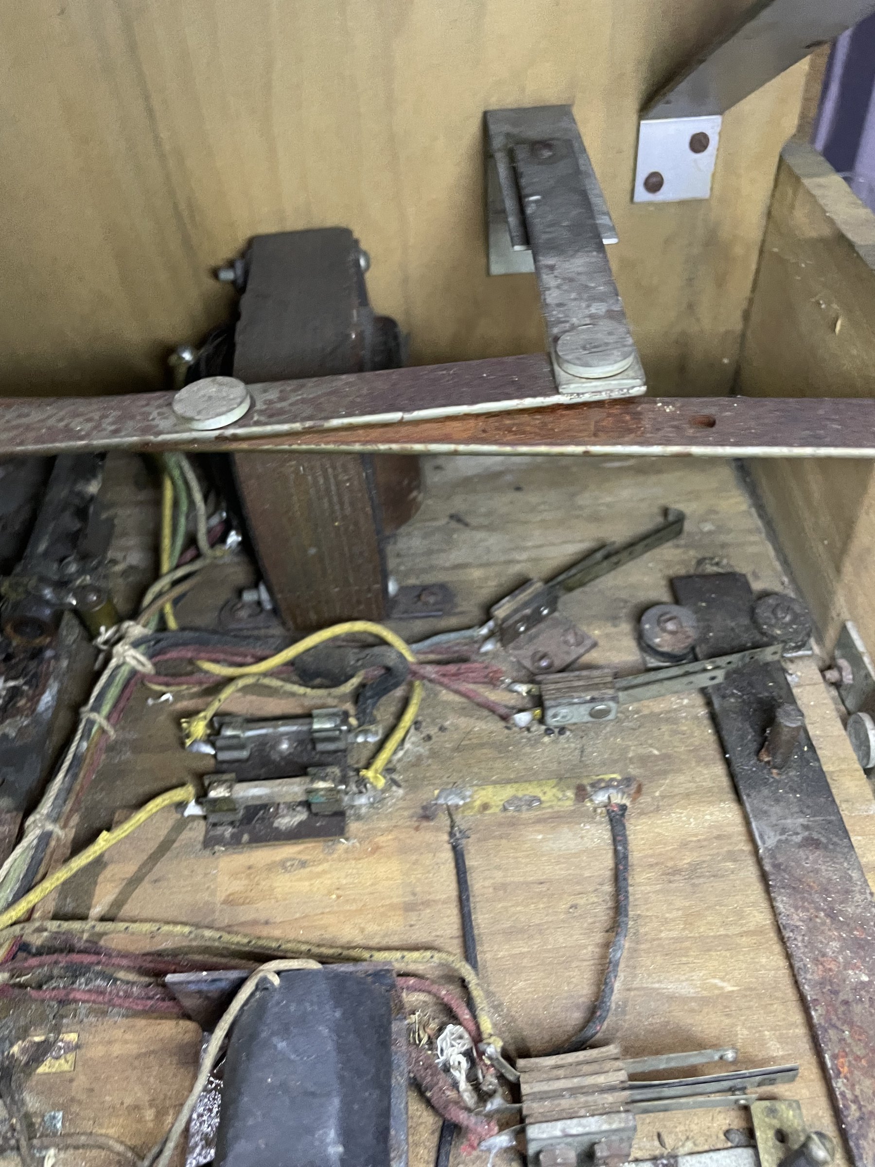 Many solenoids have rusty shafts. Some springs are broken. Many rusty parts. Wiring looks good. Score assembly has no visible damage.