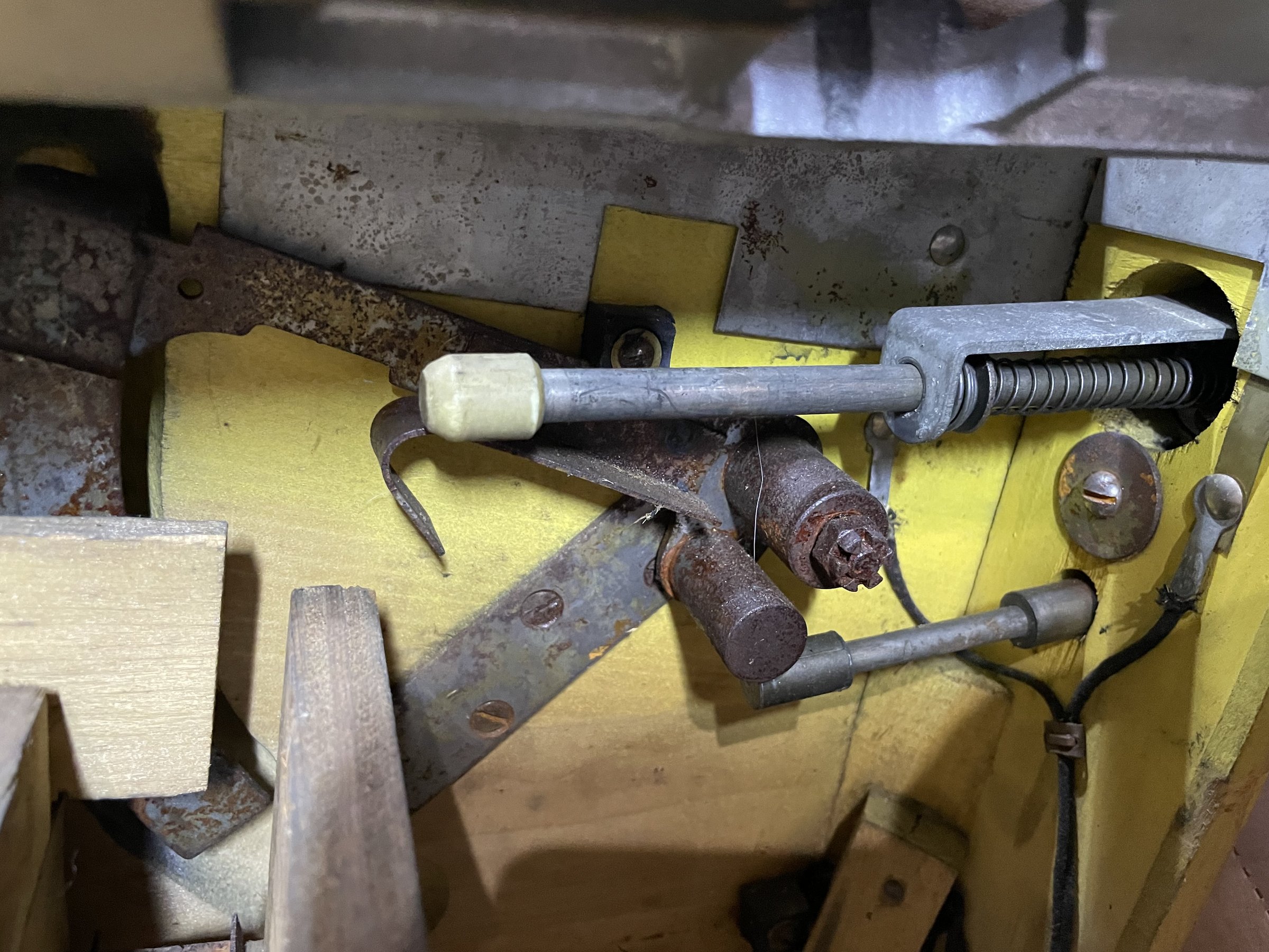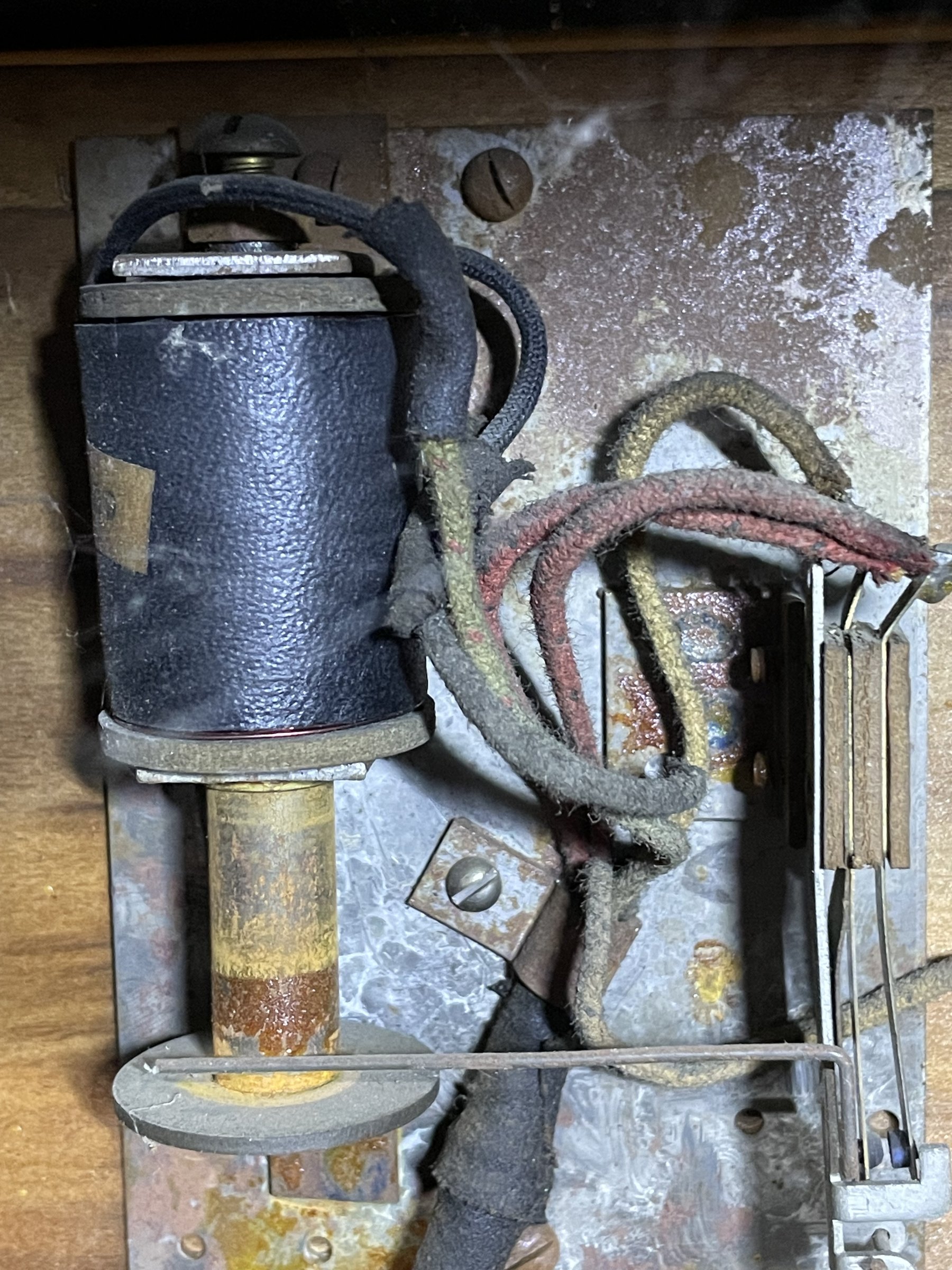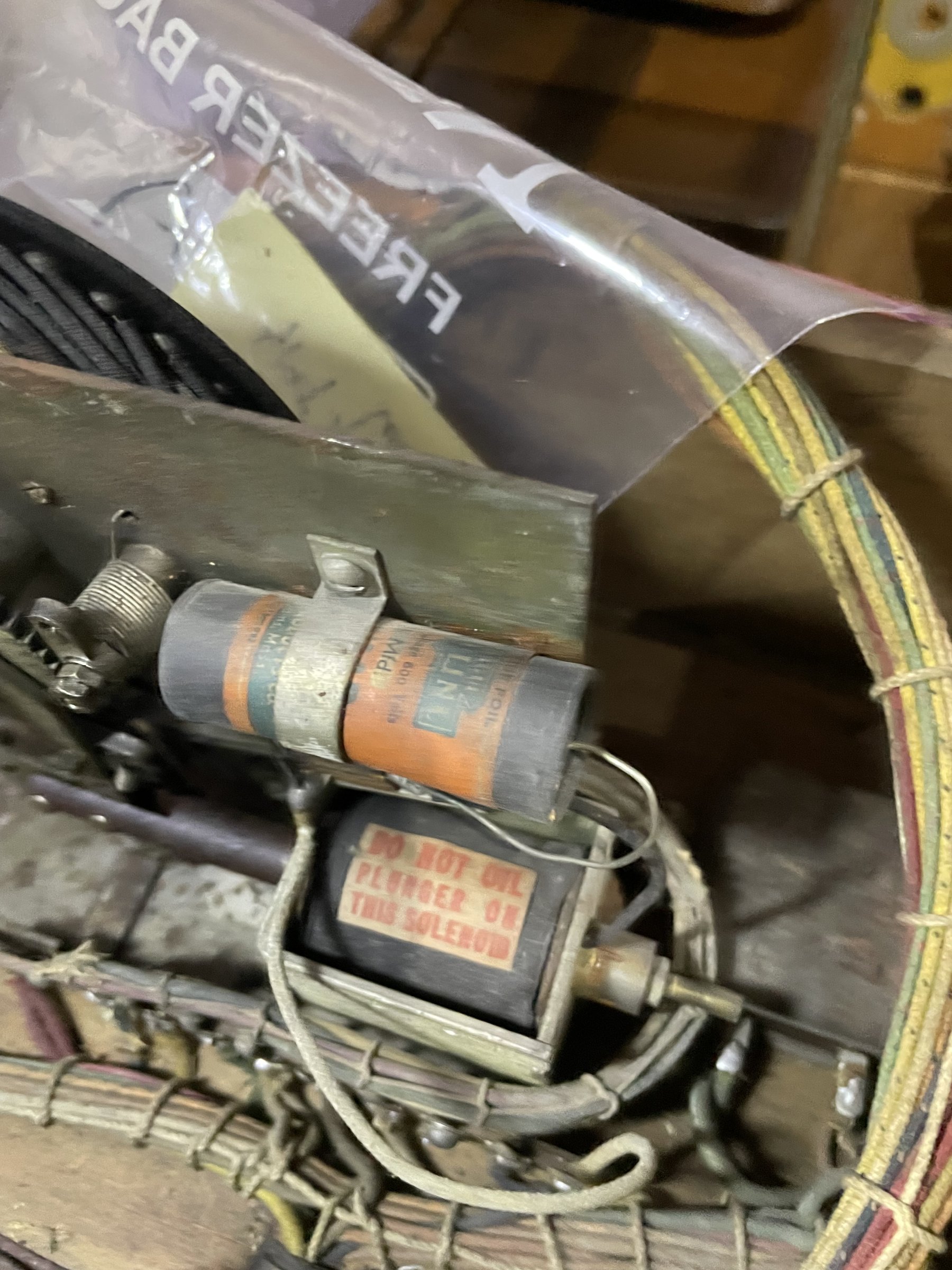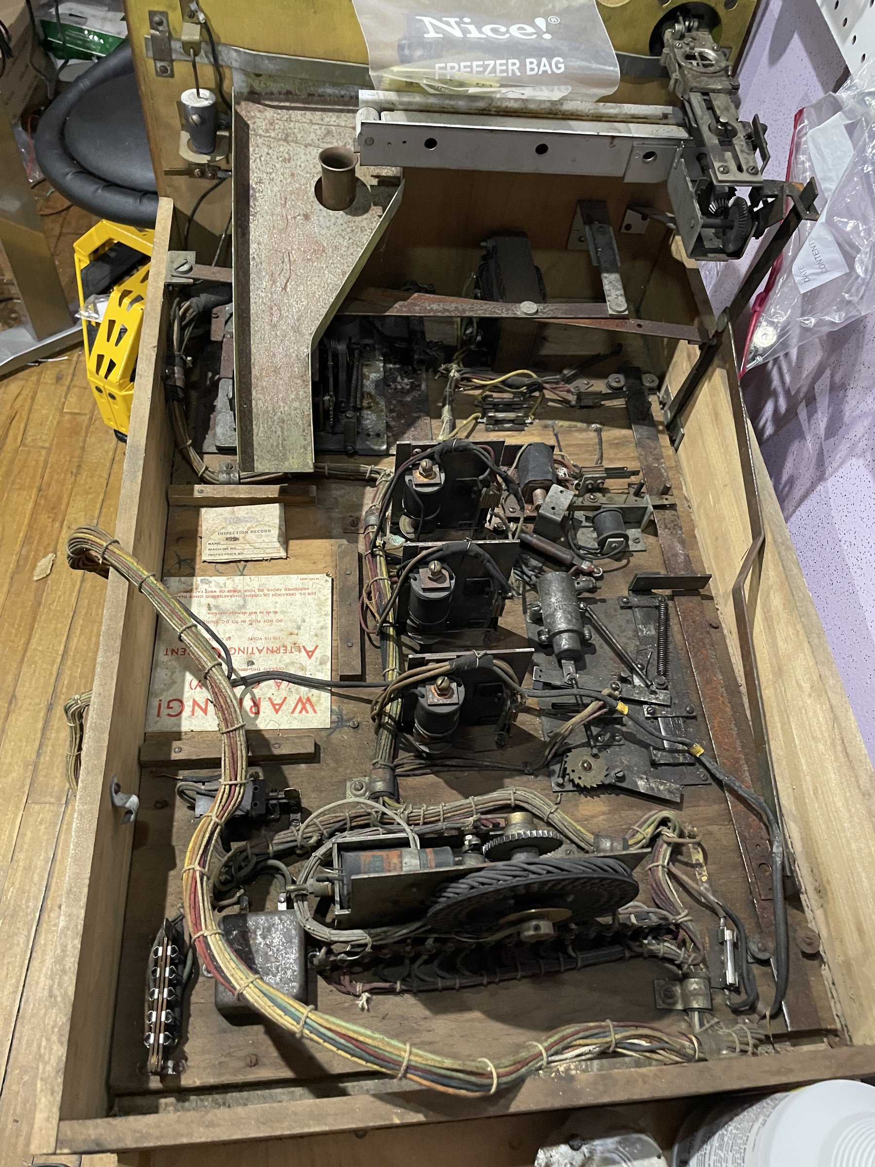 Many solenoids have rusty shafts. Some springs are broken. Many rusty parts. Wiring looks good. Score assembly has no visible damage.