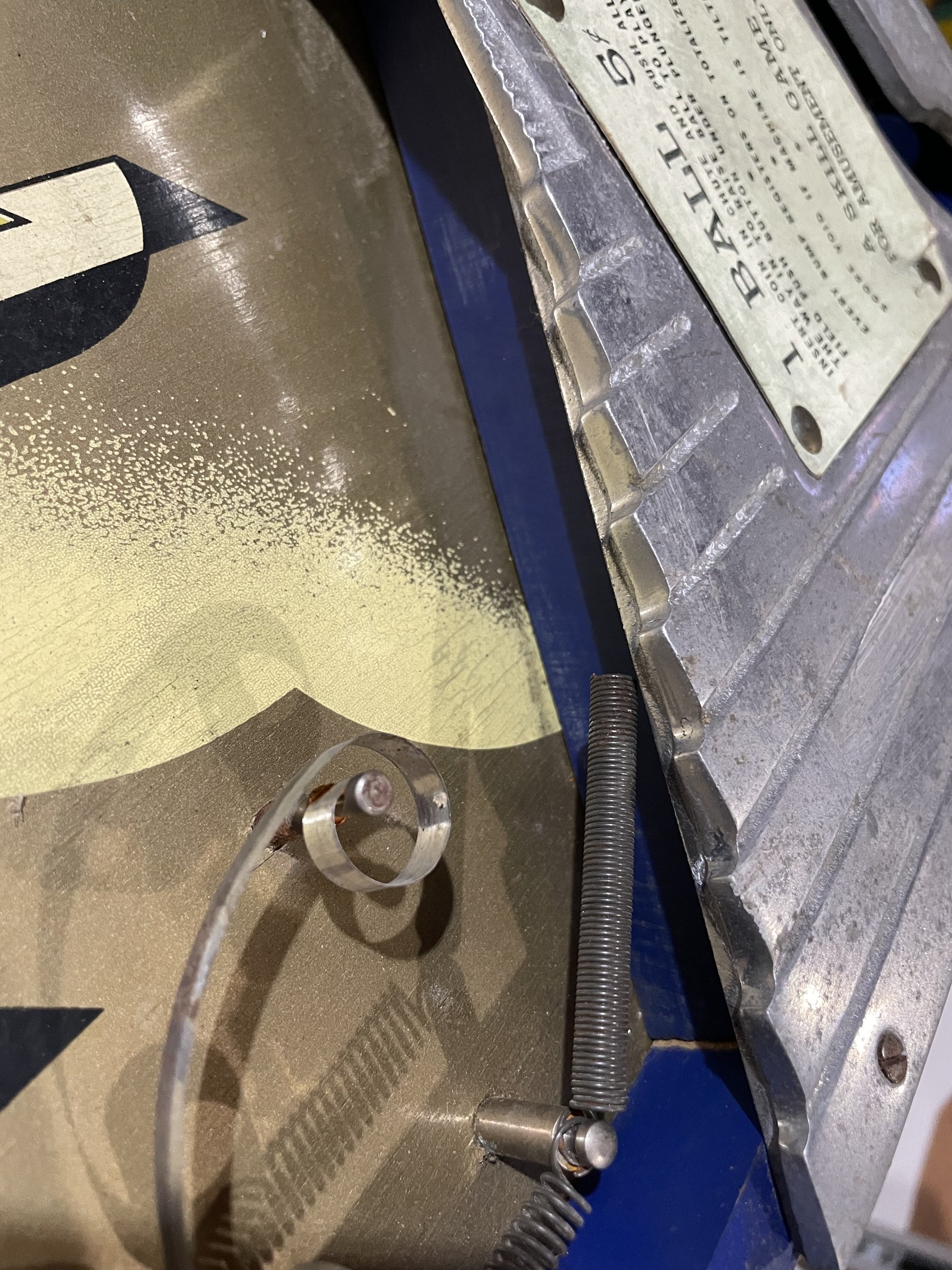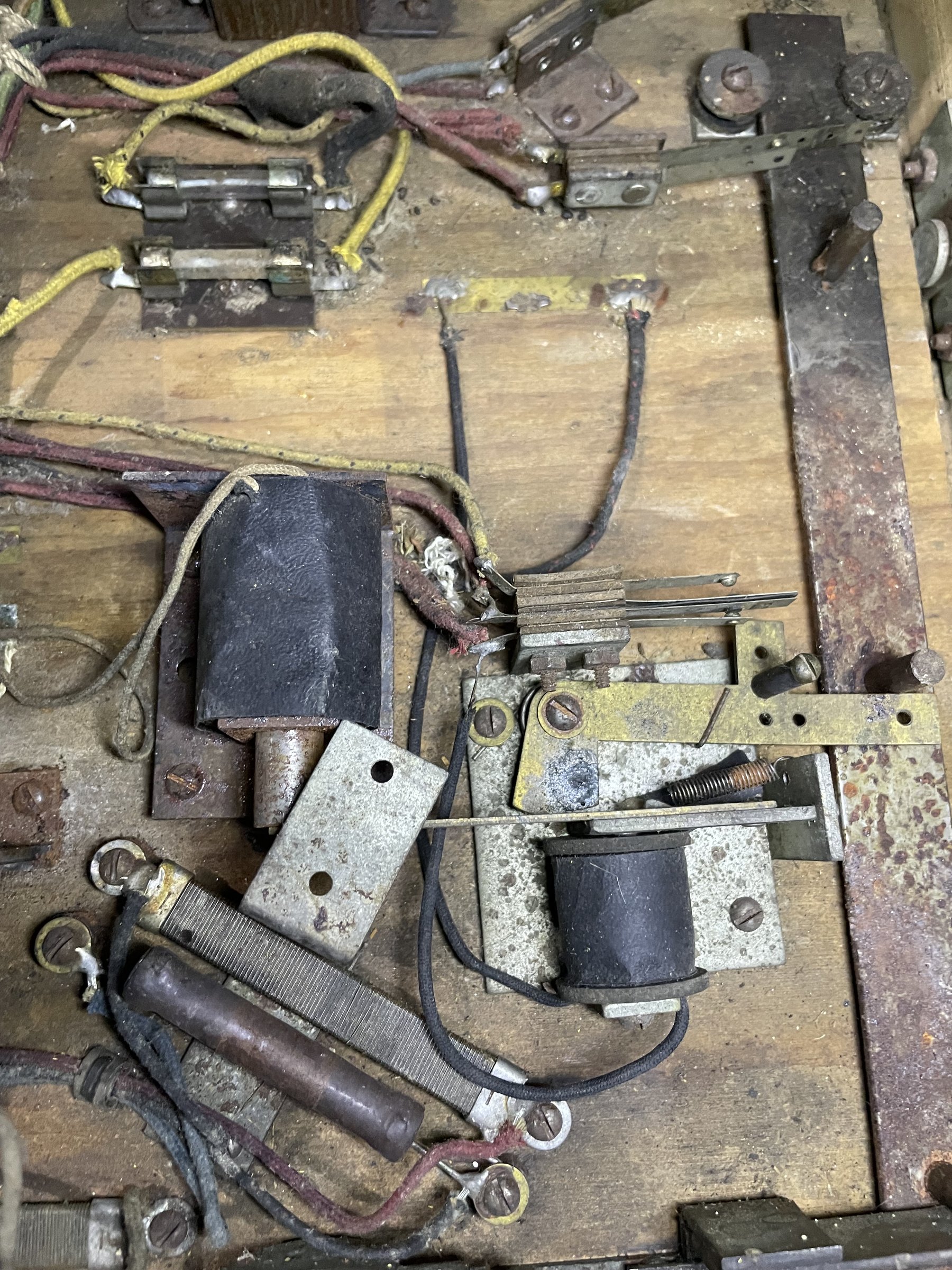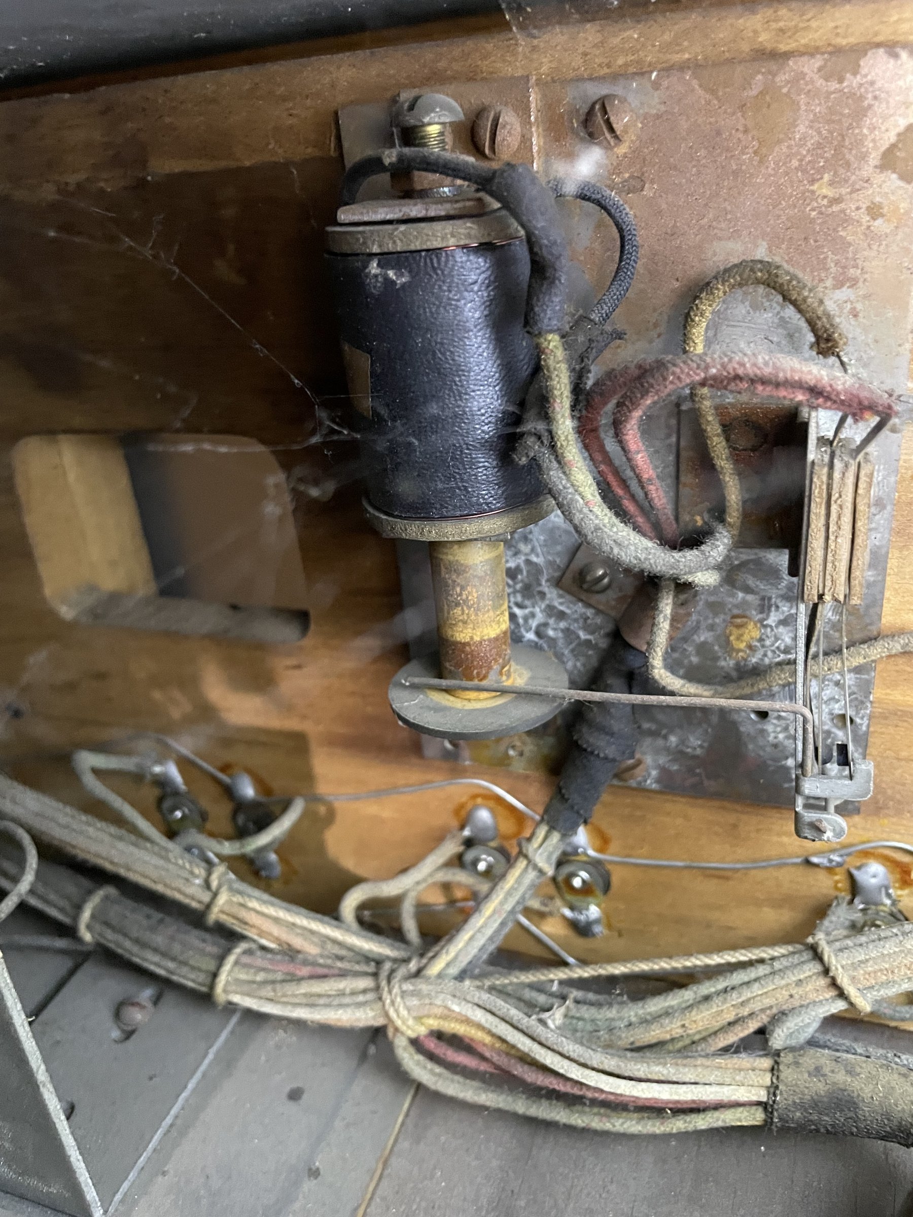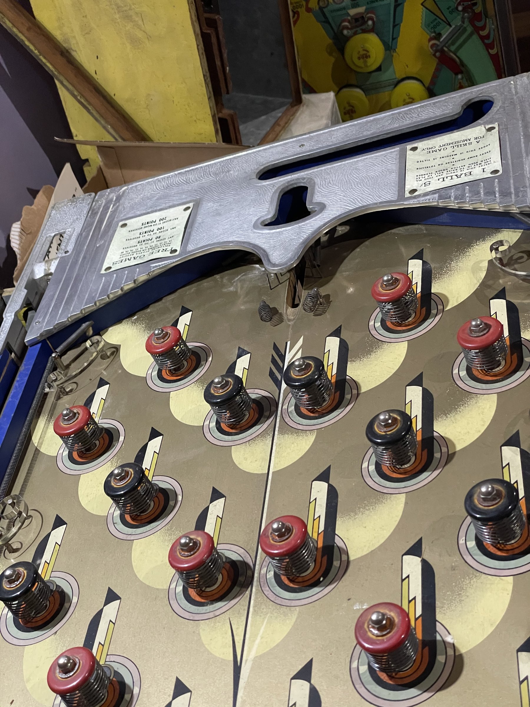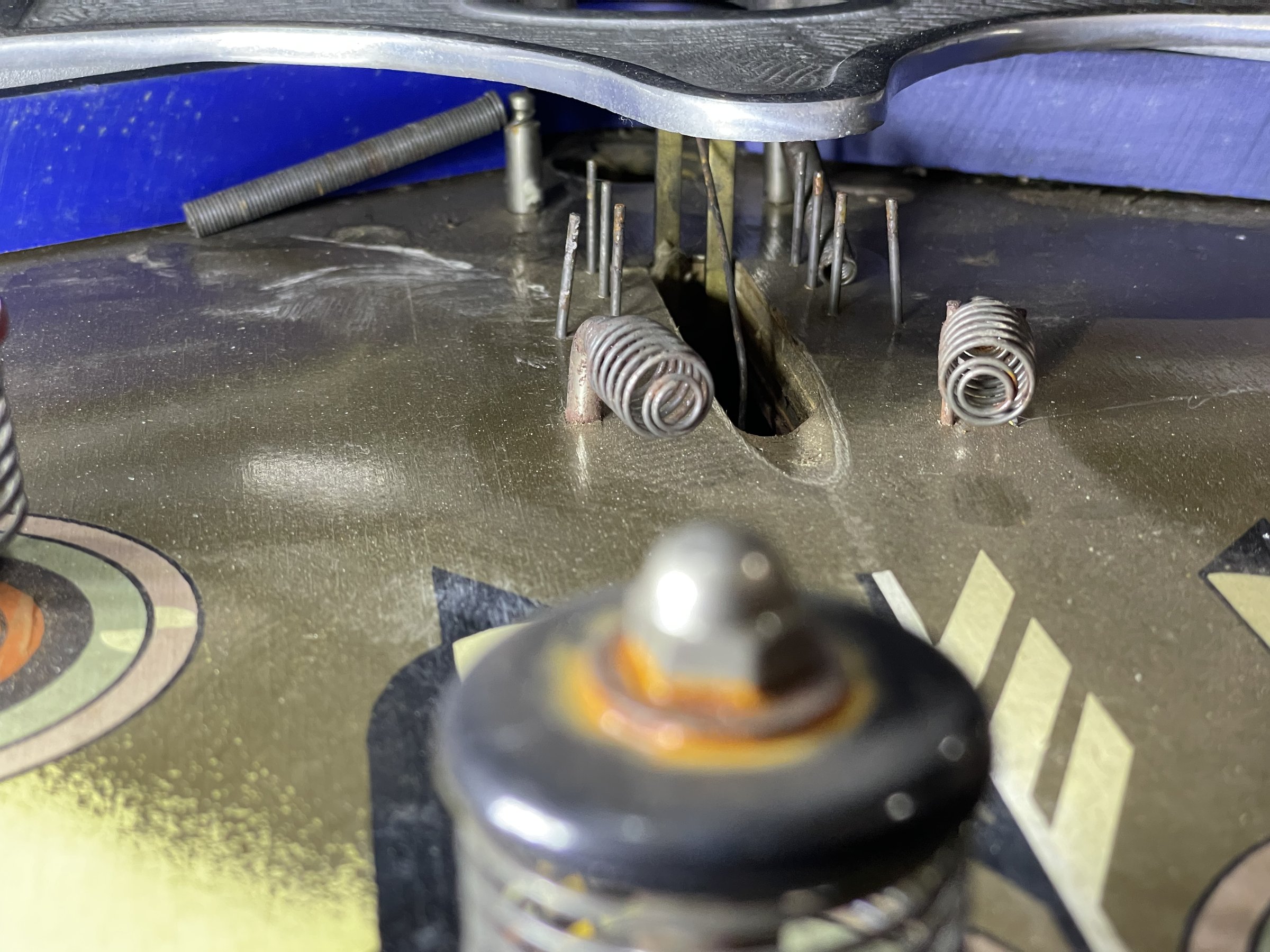 Many solenoids have rusty shafts. Some springs are broken. Many rusty parts. Wiring looks good. Score assembly has no visible damage.