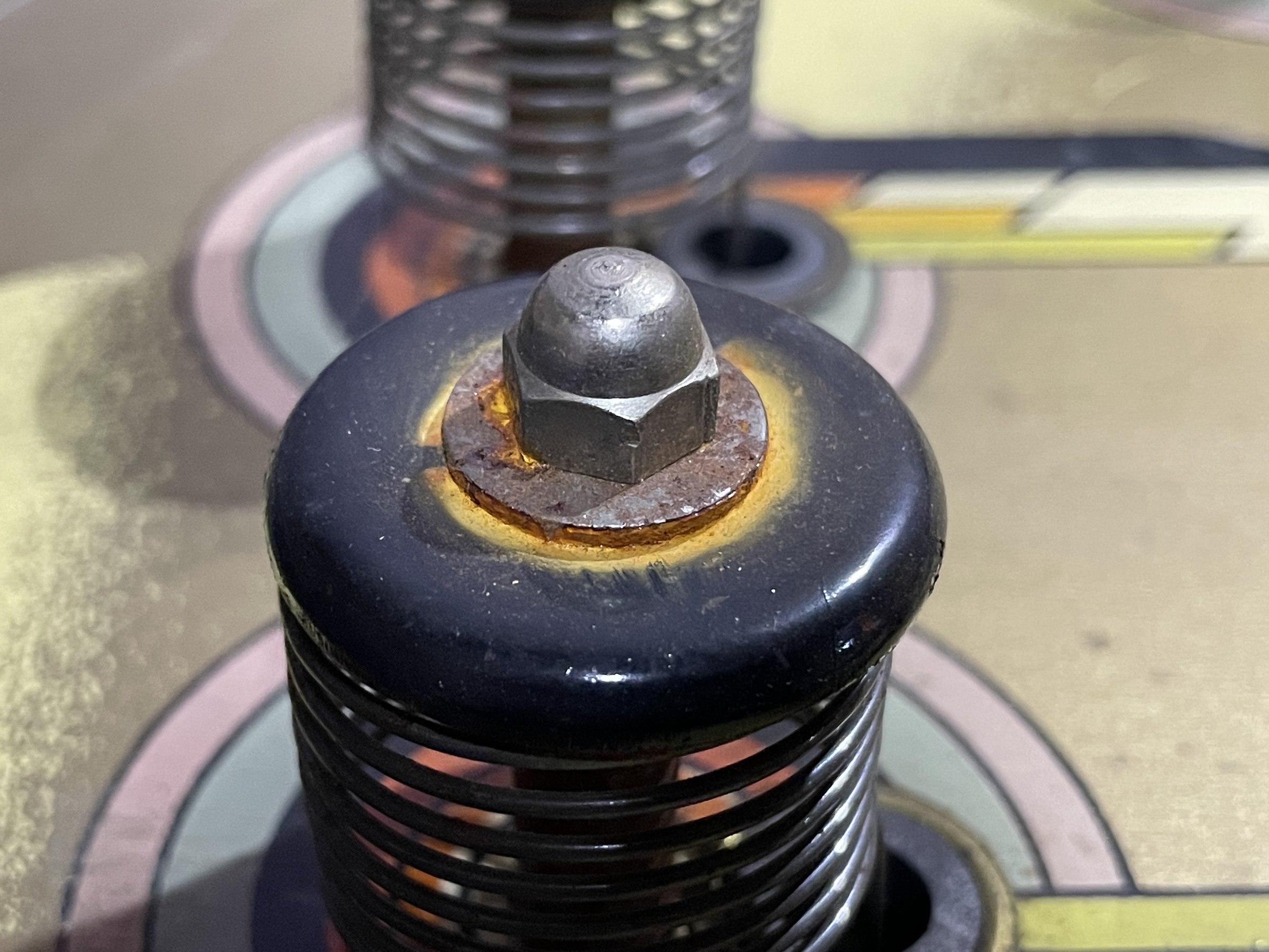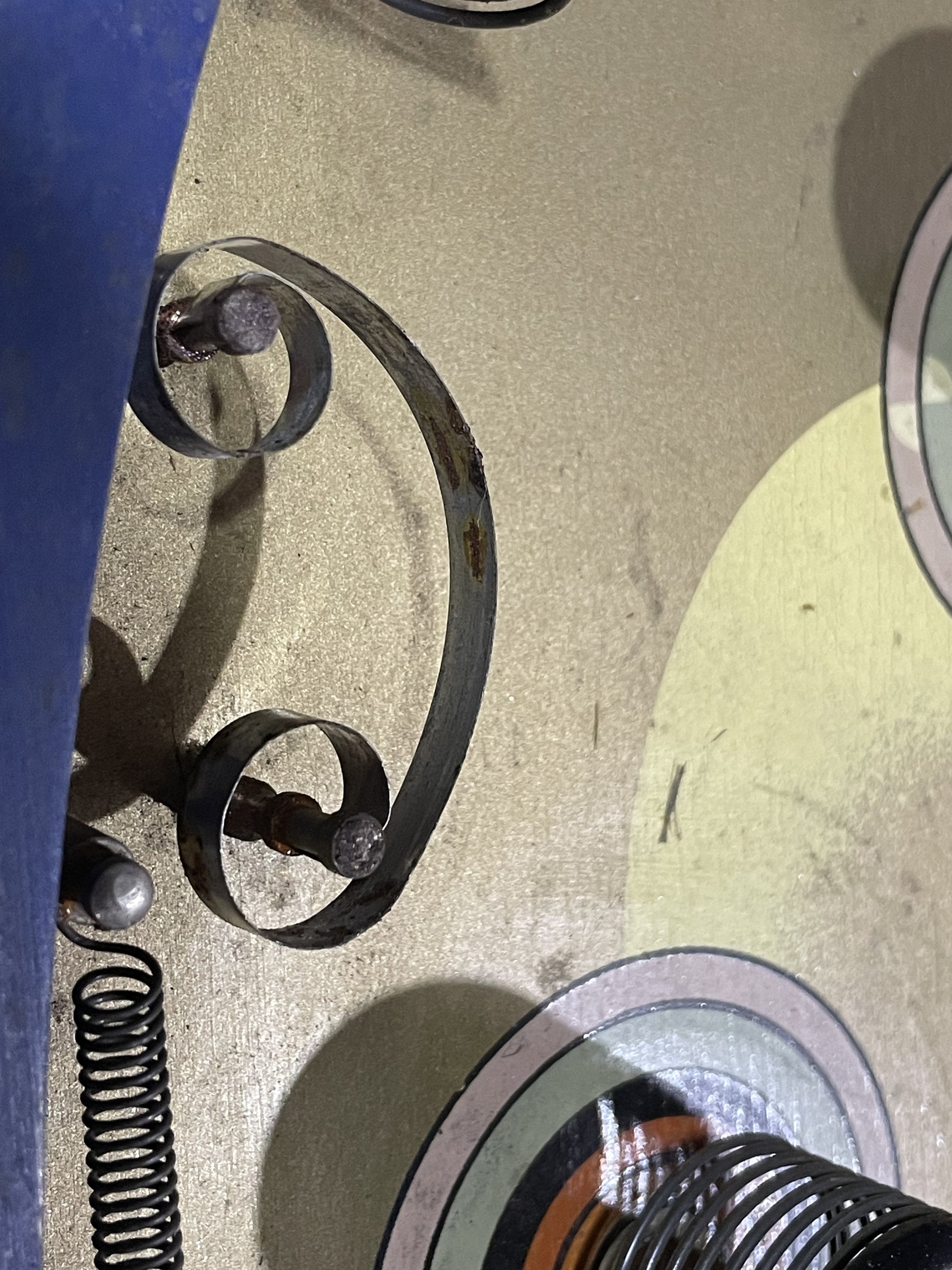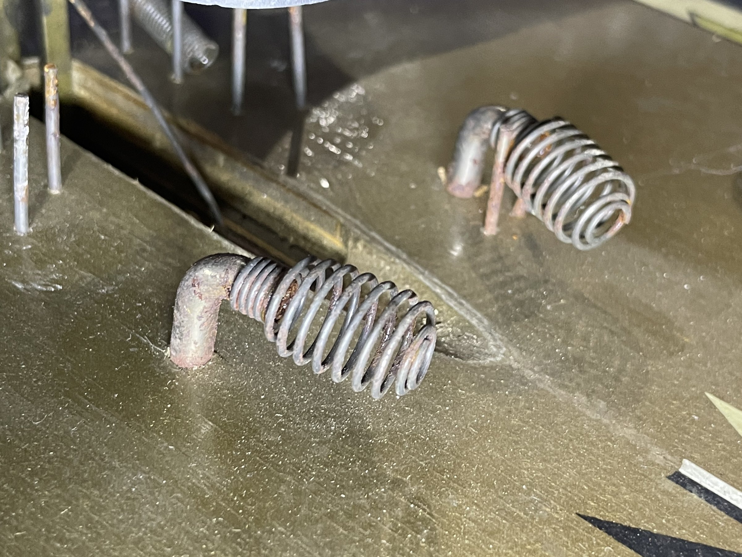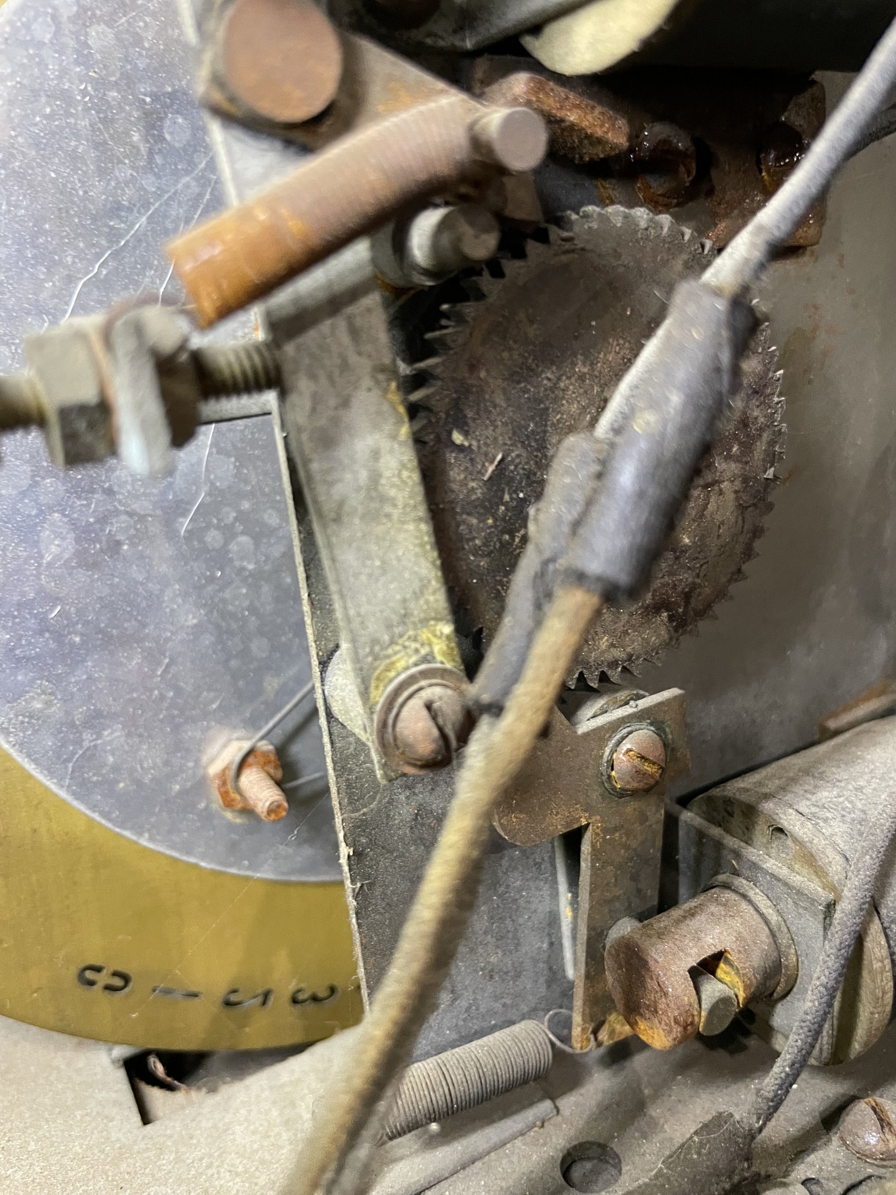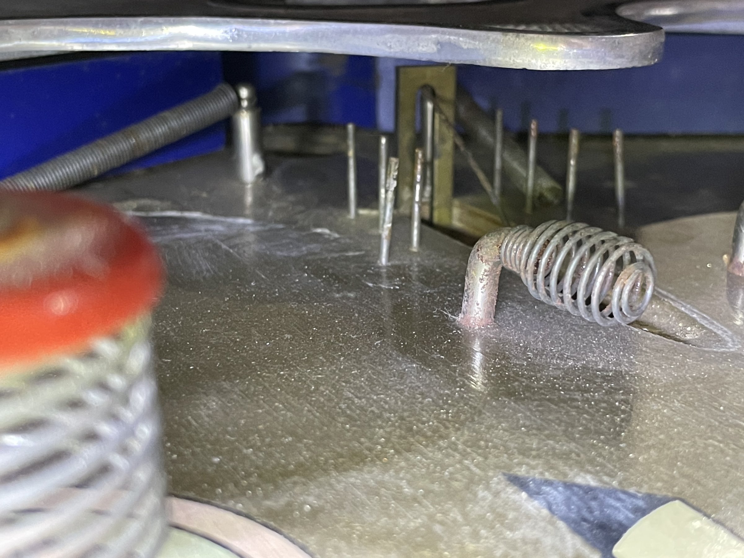 Many solenoids have rusty shafts. Some springs are broken. Many rusty parts. Wiring looks good. Score assembly has no visible damage.