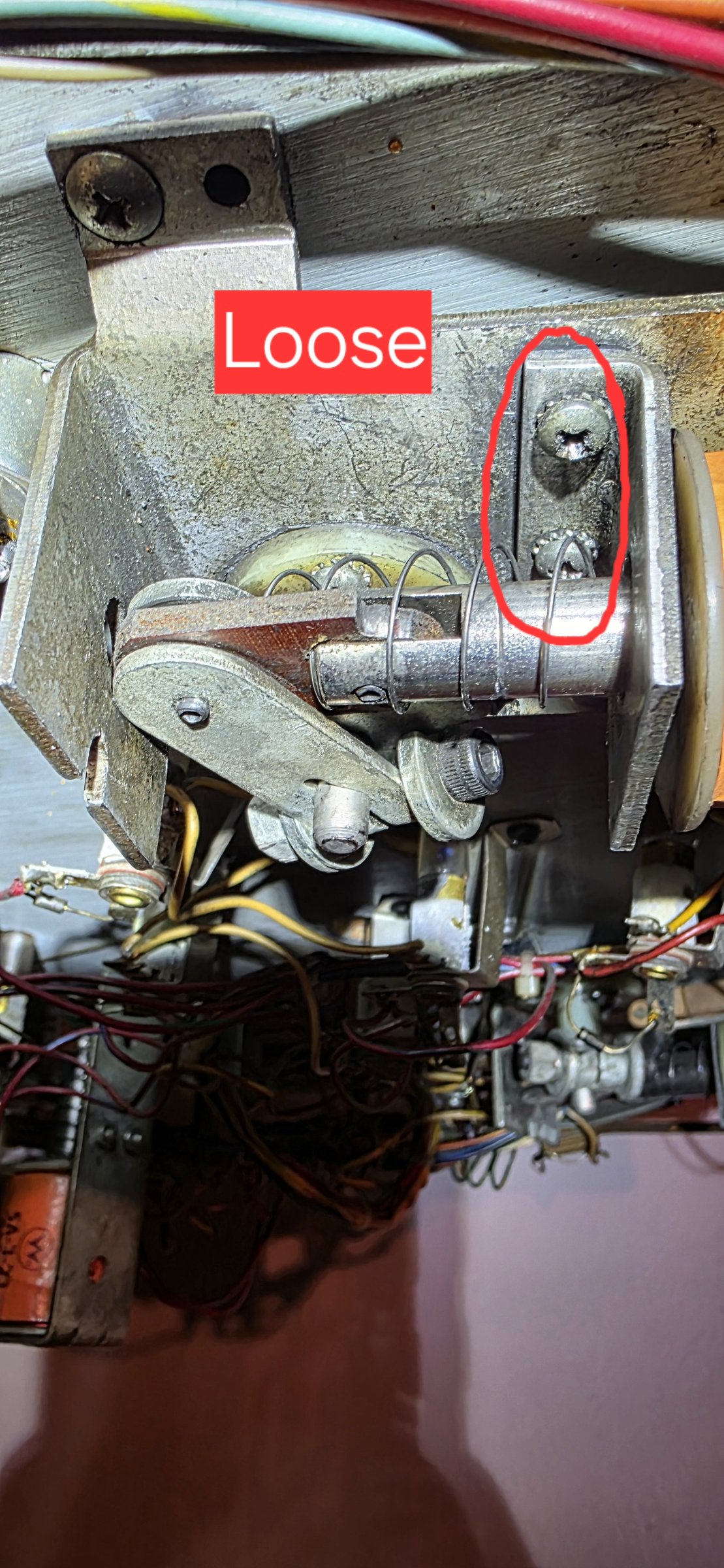 • The two screws supporting the solenoid bracket were loose - Retightened